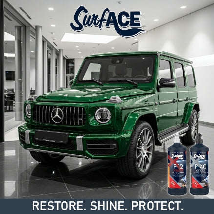 P-40 Xtra is traditionally used as a second polishing step in a process following Surf-ACE P-12 Xtra Heavy Cut Compound, where heavier oxidation, scratches or sanding scratches have been removed, to deliver optimal gloss and removal of holograms / swirl-marks left from previous polishing steps.