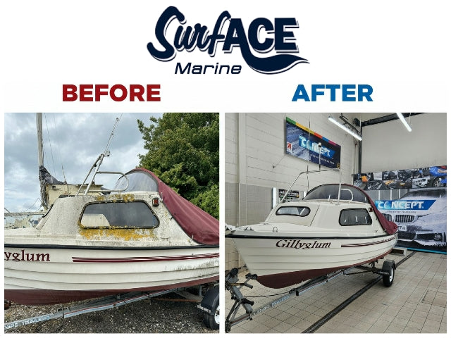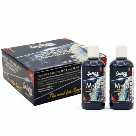 Surf-ACE Marine M-12 & M-40 Gelcoat, Fiberglass & Paint Surface Restoration Kit (M-60000US) is the ultimate correction combo, designed for use on gelcoat, fiberglass and painted surfaces to quickly and easily remove surface imperfections, deep scratches and heavy oxidation and leaves a deep, high gloss, mirror-like finish.