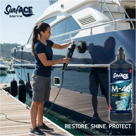 Surf-ACE Marine M-40 Ultra-Fine Marine Compound is a professional polish designed to remove light oxidation, scratches, holograms and swirl-marks on gelcoat, fiberglass and painted surfaces while delivering the highest gloss level attainable, particularly on darker color surfaces. M-40 is typically used as a second step after M-12 on darker colors but may also be used as a single polishing step on surfaces for light defect correction and to deliver deep, high-gloss in the fastest time possible